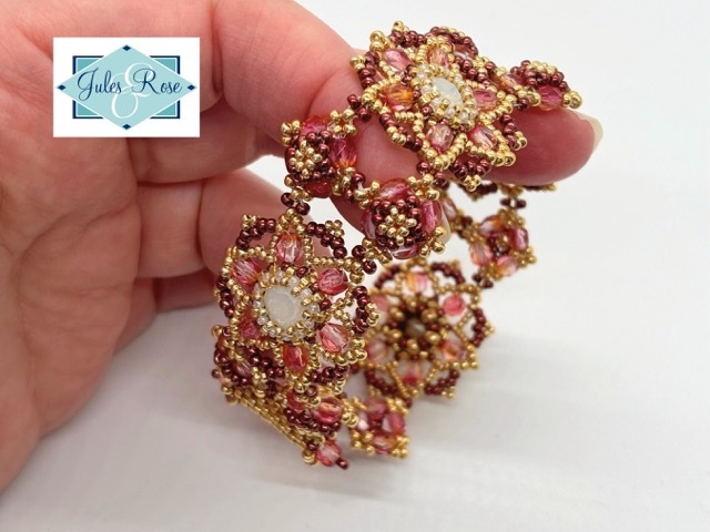 Juliet: Hi, I’m Juliet Erskine (pronounced err-skin) and my business name is Jules & Rose. You can find me at www.julesandrose.com, on YouTube, Facebook, and Instagram. I’m “Jules,” and yes—there is a “Rose”! Rose is the nickname of my dear friend Sarah, who was my original business partner when I started out beading. She lives in Scotland, and when I moved to California in 2016 she graciously allowed me to keep the business name. She’s still a wonderful friend, my sounding board, pattern tester, proofreader, and she helps admin the Facebook group.