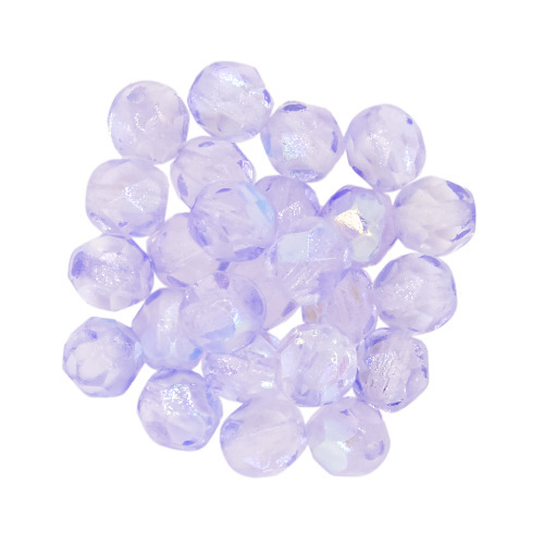 - 6mm Firepolish Beads in Coated Lavender AB: Strand of 25