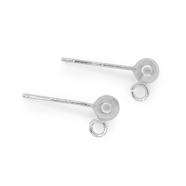 - GleamCraft Ball Post Earrings w/ side loop, White Gold Plated (1 pair)