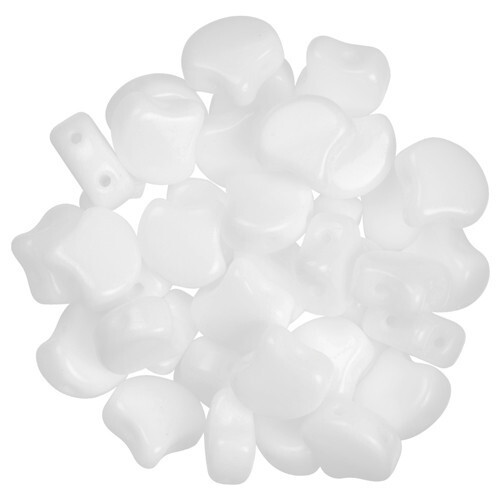 - 2-Hole GINKGO LEAF Czech Glass Beads – WHITE (2.5" tube)