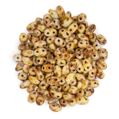 - 2-Hole MiniDuo Czech Glass Beads in Opaque White Picasso (2.5" tube)