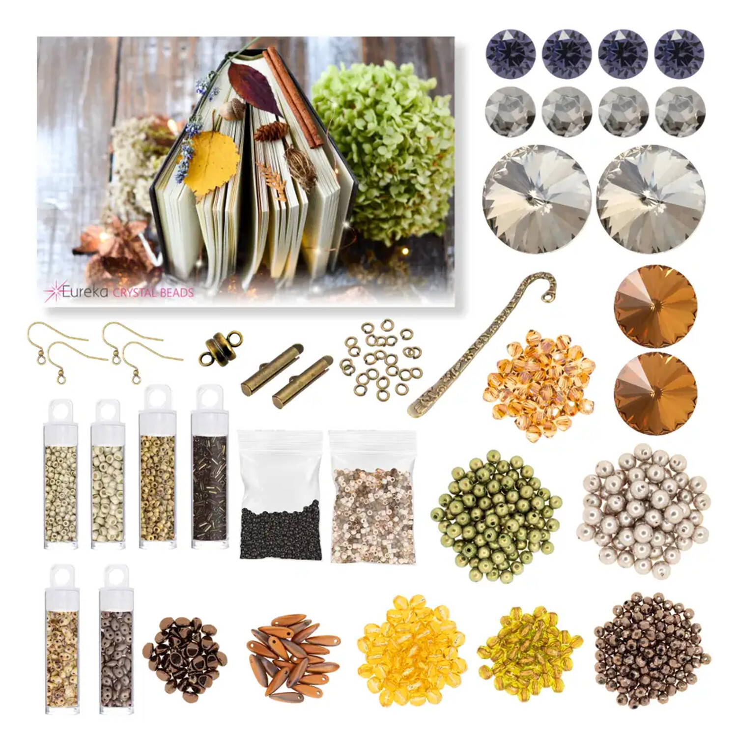 All the findings in this collection are in a warm antique bronze finish, tying the palette together beautifully. Essentials like ear wires, clasps, and jump rings are included—but the standout is a special bookmark base, a nod to the collection’s literary theme. Attach your beadwork and create a unique, functional piece that blends craft and storytelling. In the Plot Twist Collection, you get: