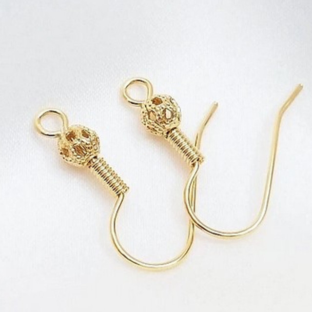 - Ear Wire w/Ball & Coil 21mm 14K Gold Plated (2 pairs)