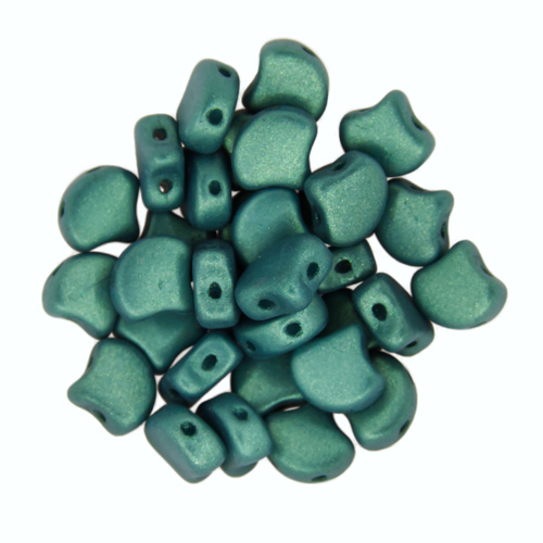 - 2-Hole GINKGO LEAF Czech Glass Beads CHATOYANT SHIMMER GREEN (8 g bag)