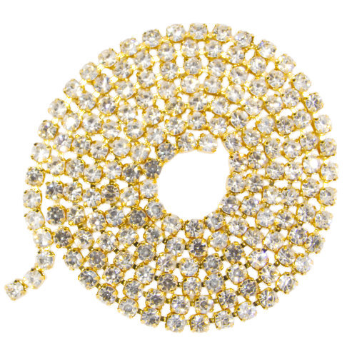 - Krakovski Crystal Cup Chain 3mm CRYSTAL Gold Plated (2 ft)