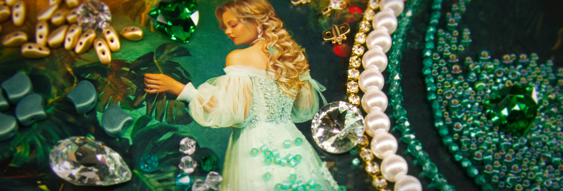 Step into a world of royal mystery and lush beauty with our Queen’s Garden Collection, the main Eureka Beads Collection first released in November 2025 and now available in a limited restock! This palette is deep, elegant, and intoxicating: think rich emerald greens and both intense & soft teals, touched by gold, reminiscent of deep green exotic leaves under chandelier light. It’s not a bright, multicolored mix this time; instead, it’s a study in depth and refinement, where subtle shade variations weave an atmosphere that’s both regal and enchanting.